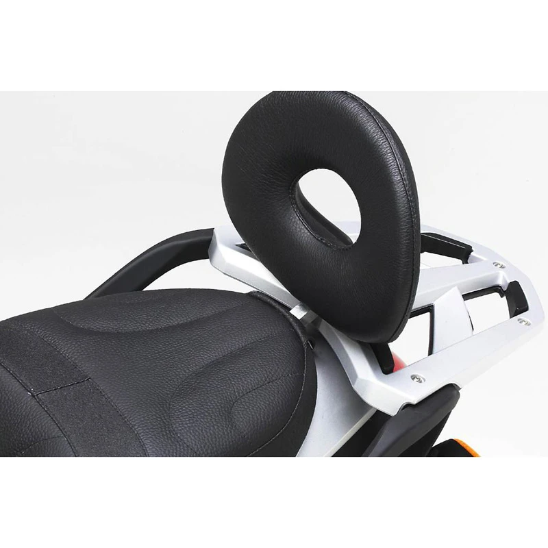 - When using , the set screw must be installed under the saddle before installing seat onto the bike. Backrest works with BMW luggage rack in place as shown, but does not work with BMW trunk.