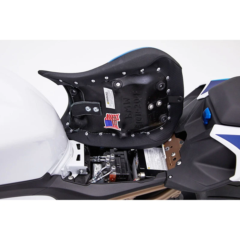 - Front saddle installs just like stock. Brackets are pre-installed on the seat so it’s ready to go right out of the box. We include a button head screw to use in place of the OEM shoulder bolt.