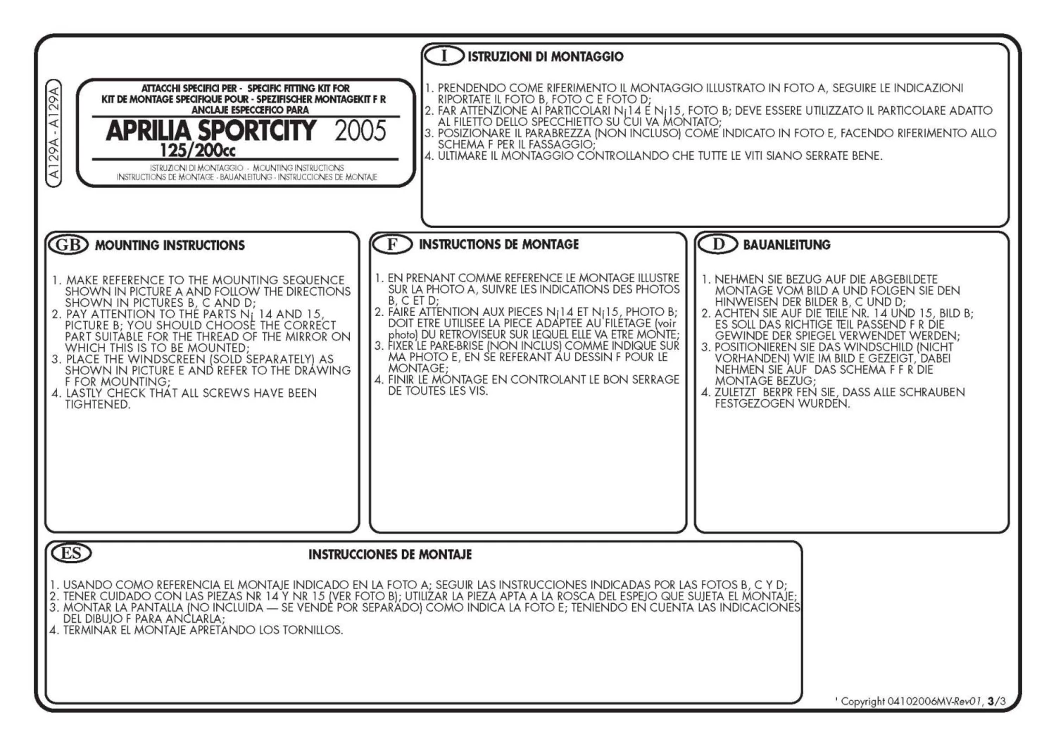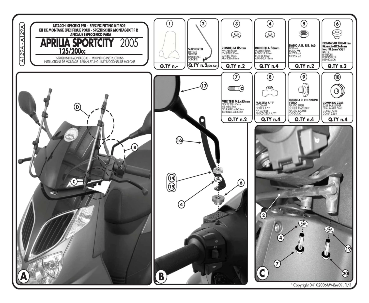 Fits: Aprilia Sportcity 125 / 200 / 250 ’04-’08