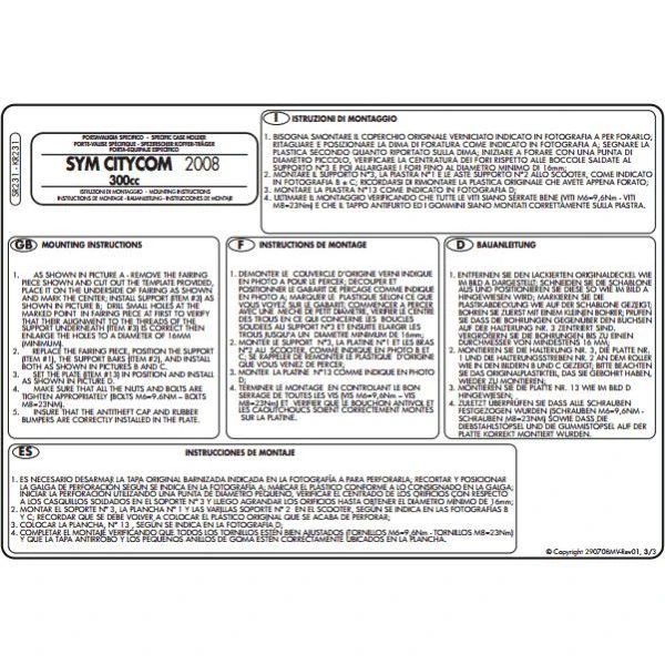 This Givi SR231M Rear Carrier is designed to accept a Givi Monokey Top Case on to the Sym Citycom 300, 2008 models and onwards.