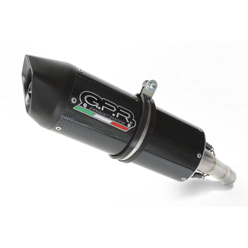 Developed from GPR thanks to Moto GP and SBK races experiences, the system has a oval shape, Diam. 90x120mm, medium weight about 1.75 kg depending from motorbike of destination. GPR provide original homologation documents and instructions available as drawings or video or pictures books. If item is used in homologated configuration it doesn’t require mapping, it is possible use panniers and central stand and sonda lambda boss is included when necessary. Available many sound file and pictures gallery,product is hand made in Italy, produced under European directives for noise pollution only, it is street legal for noise pollution only level and it has 2 years of international warranty.