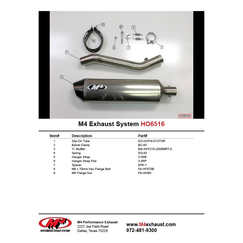 M4 HO6516 Standard Slip-On Exhaust with Titanium Muffler is made specifically for Honda CBR600 F4i (2004-2007).