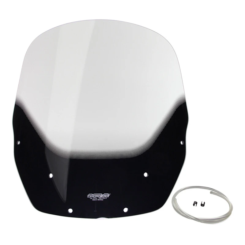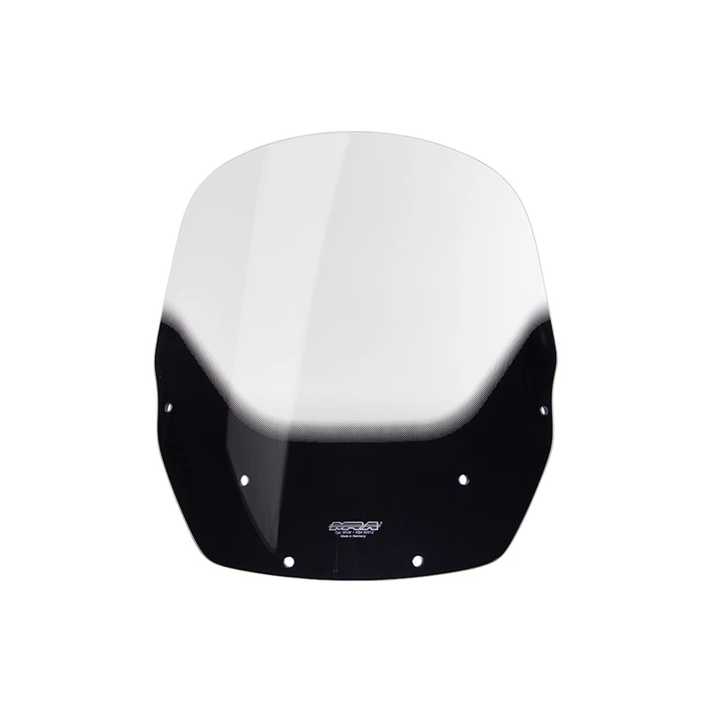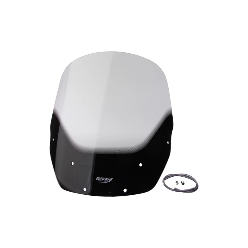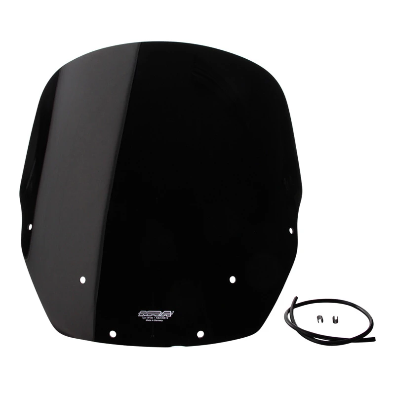 The Touring Screen has a similar shaped base as your bike�s standard screen but, typically, is longer and taller. Its extra length and height is created by an upwardly sloping rear section over its entire width, designed to deflect wind pressure away from the rider, ensuring an easy, relaxing ride – even on long trips. For some models with very upright screens as standard, to avoid creating unnecessary turbulence, the Touring Screen is just simply extended without any further upwards angle. Available in all MRA-colors.
