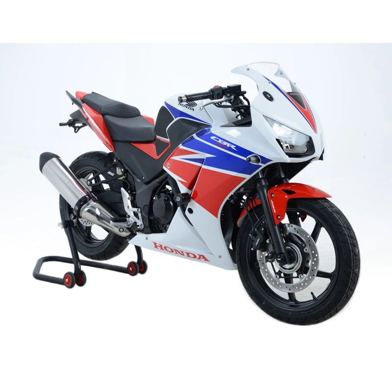 R&G Racing’s CP0375.BL Aero Style Frame Sliders are made specifically for Honda CBR300R (2014-current).