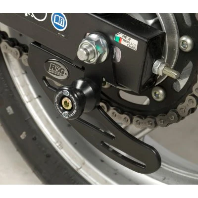 The spool is mounted to a special, black-anodized aluminum bracket (included with the kit). The product will give protection to the rear axle and swingarm area in a crash. When not protecting your investment the “cotton reel” can be used to lift the motorcycle using a rear stand with hooks. For rear wheel removal, you can take the Cotton Reels out of the aluminum blocks and insert them into the paddock stand bobbin screw holes.
