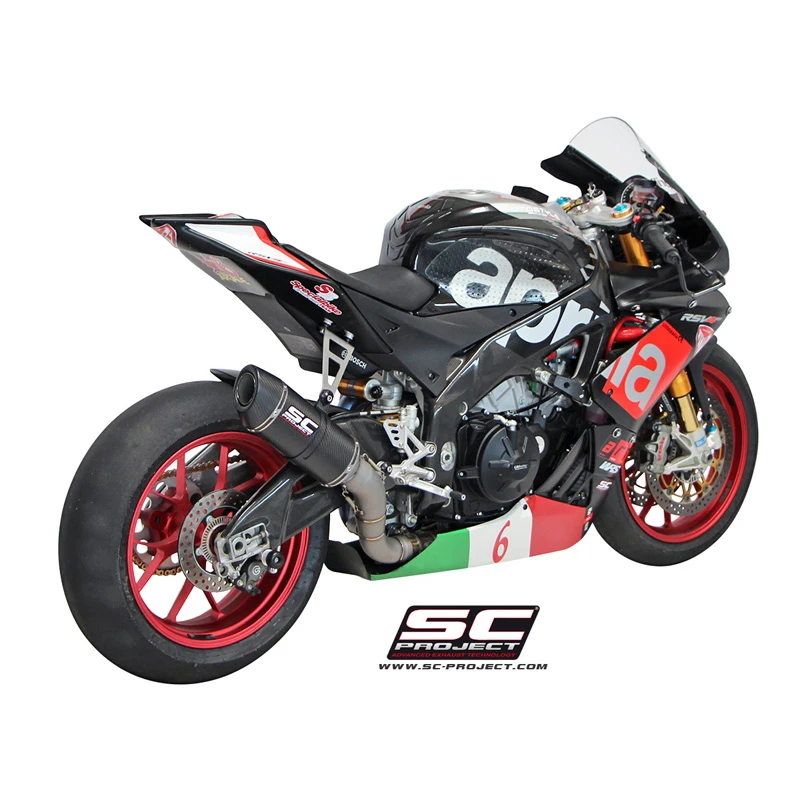 SC-Project’s A15-40FTC Matte Carbon Oval Racing Exhaust is made specifically for Aprilia RSV4 RF / RR (2015-2016).