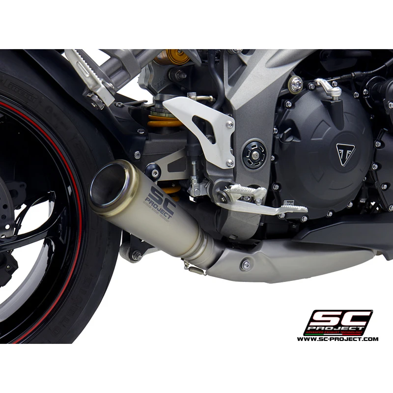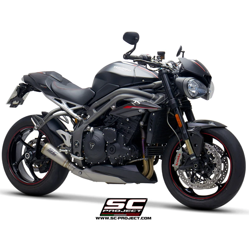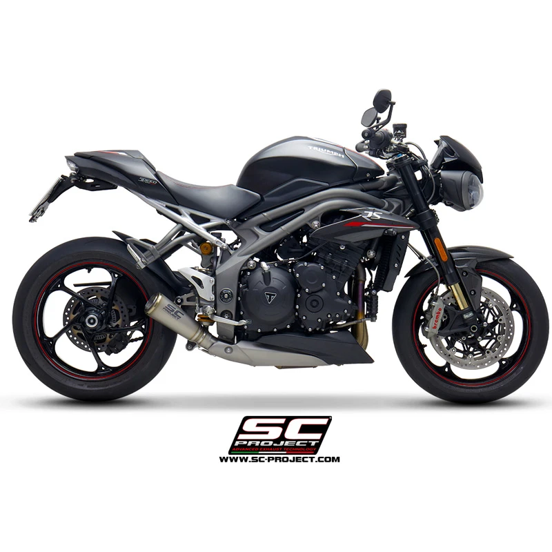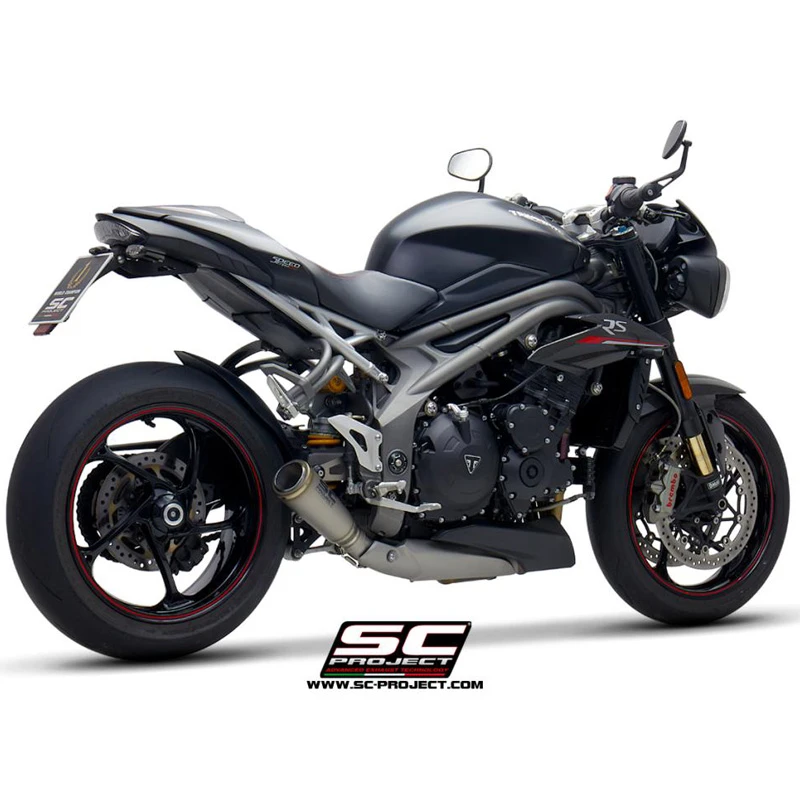 SC-Project’s T22-43T S1-GP Slip-on Exhaust, Titanium with Carbon Fiber End Cap is made specifically for Triumph Speed Triple S / RS (2018-current).