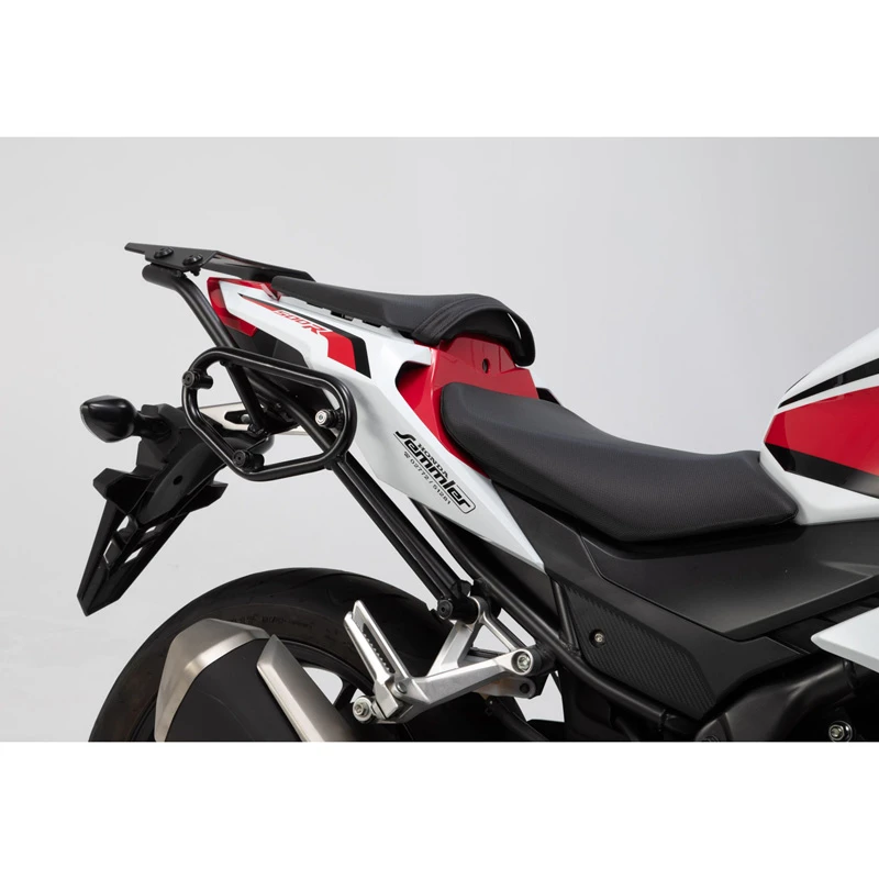 - The SLC side carrier, individually designed for Honda CB500F (16-) and CBR500R (16-), fits perfectly into the visual appearance.
